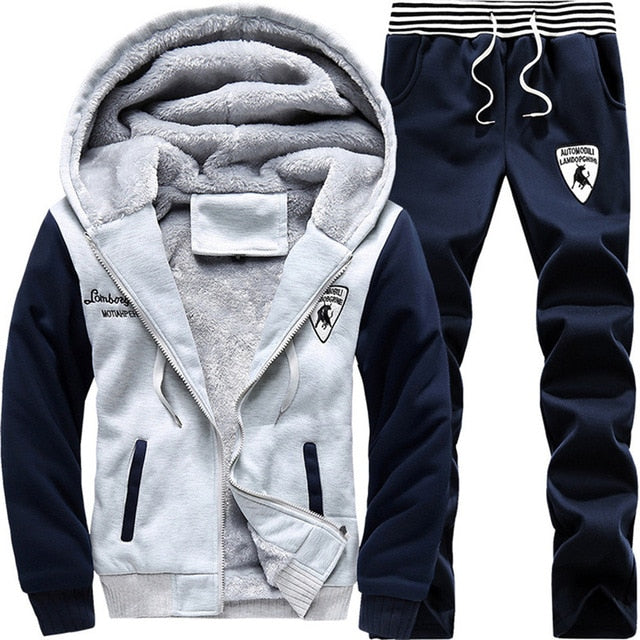 Brand New Men Set Fashion Winter Tracksuits Thick Fleece Lined Hoodies Sweatshirt + Pants Track Suit Mens Sportswear Sweat Suit